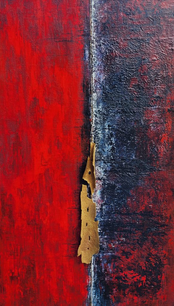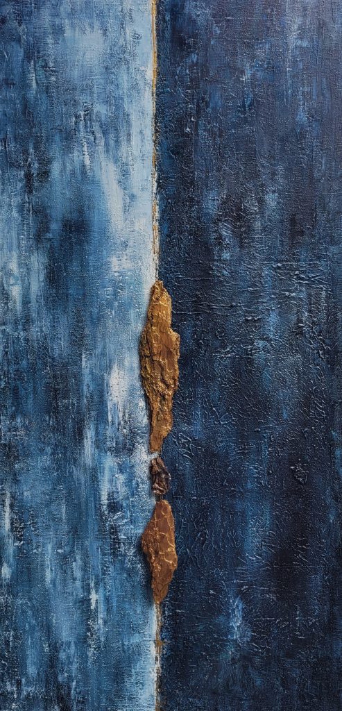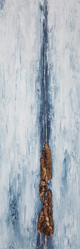 Acryl, Struktur und veredeltes Holz auf Leinwand